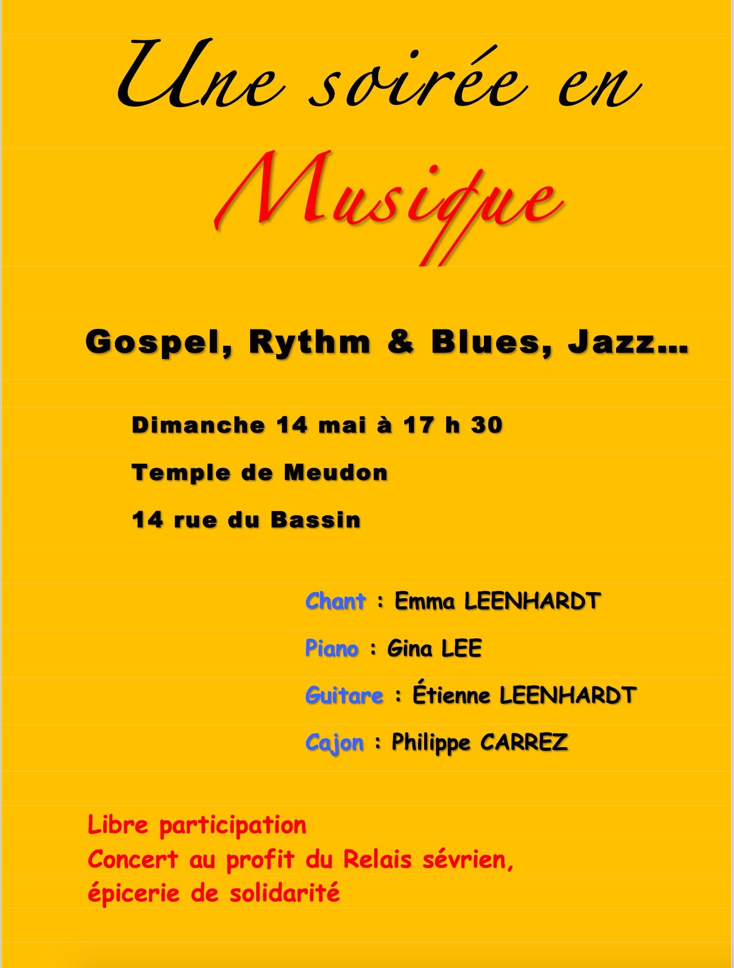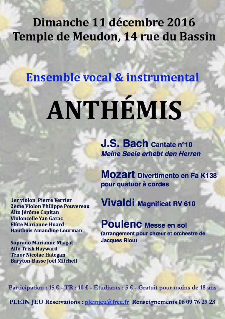 La présidence se double de la fonction d’organisateur, qui est de beaucoup la plus passionnante mais aussi… la plus absorbante. Et comme le président n’est pas « indéracinable » nous recherchons parmi de plus jeunes membres de la paroisse, une ou un volontaire motivé(e) pour prendre le relais de ce ministère et perpétuer cet aspect de la vie musicale de la paroisse… et du quartier.