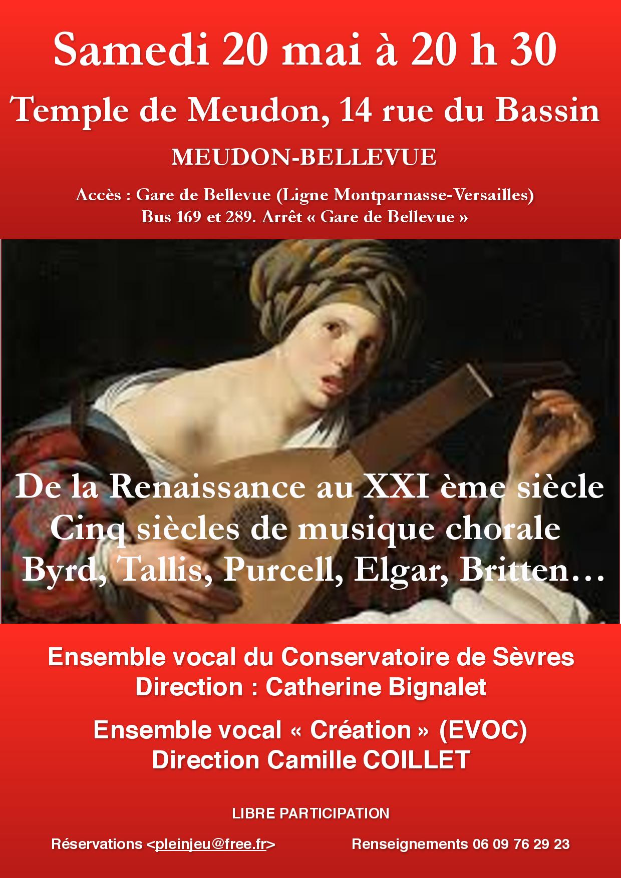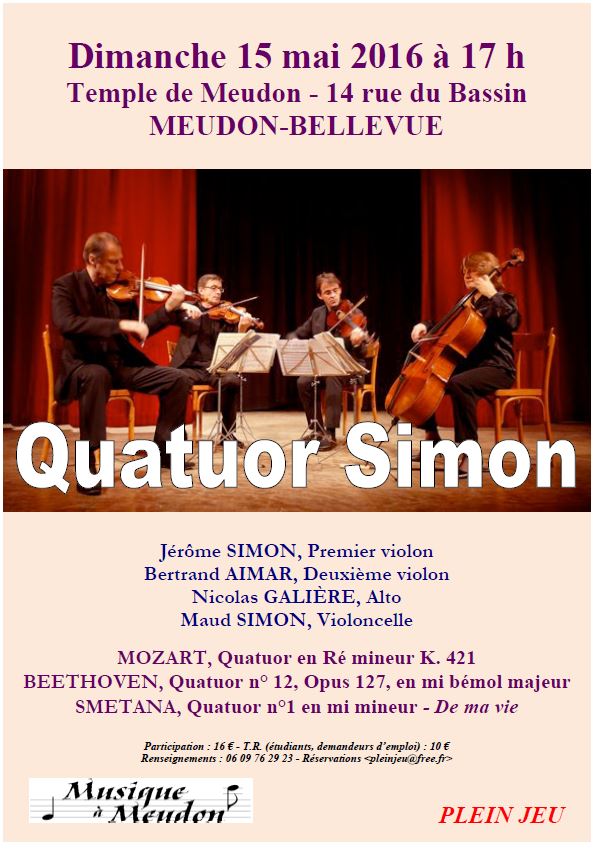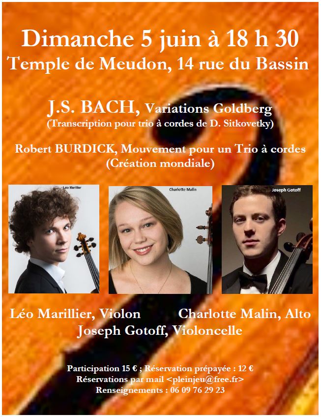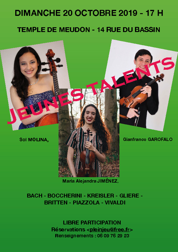Dès sa création en 1985, Plein Jeu a présenté des concerts de musique classique, principalement au temple de Meudon, dont l’acoustique est appréciée du public et des musiciens, mais aussi des récitals de Jazz ou de Variétés. Anecdotiquement, certains concerts se sont déroulés à la Maison paroissiale de Sèvres ou à la Chapelle de Ville-d’Avray.